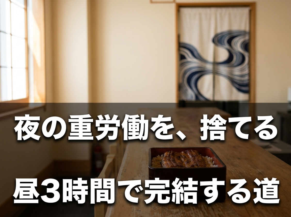 『昼だけ営業のうなぎ屋』は、夜の重労働を避けつつ高単価素材で利益を残せる固定費圧縮型のモデル。今回の比較で見えた要点を整理します。