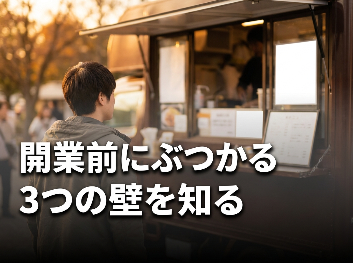 「店舗型うなぎ屋を持つのは現実的に難しい。でもキッチンカーならひょっとして自分にも…」そう感じて検索に辿り着いた方に、最初に整理してほしいのは、この業態には固有の3つの壁があるということです。どれも超えられない壁ではありませんが、順番を間違えると資金計画がまるごと崩れます。