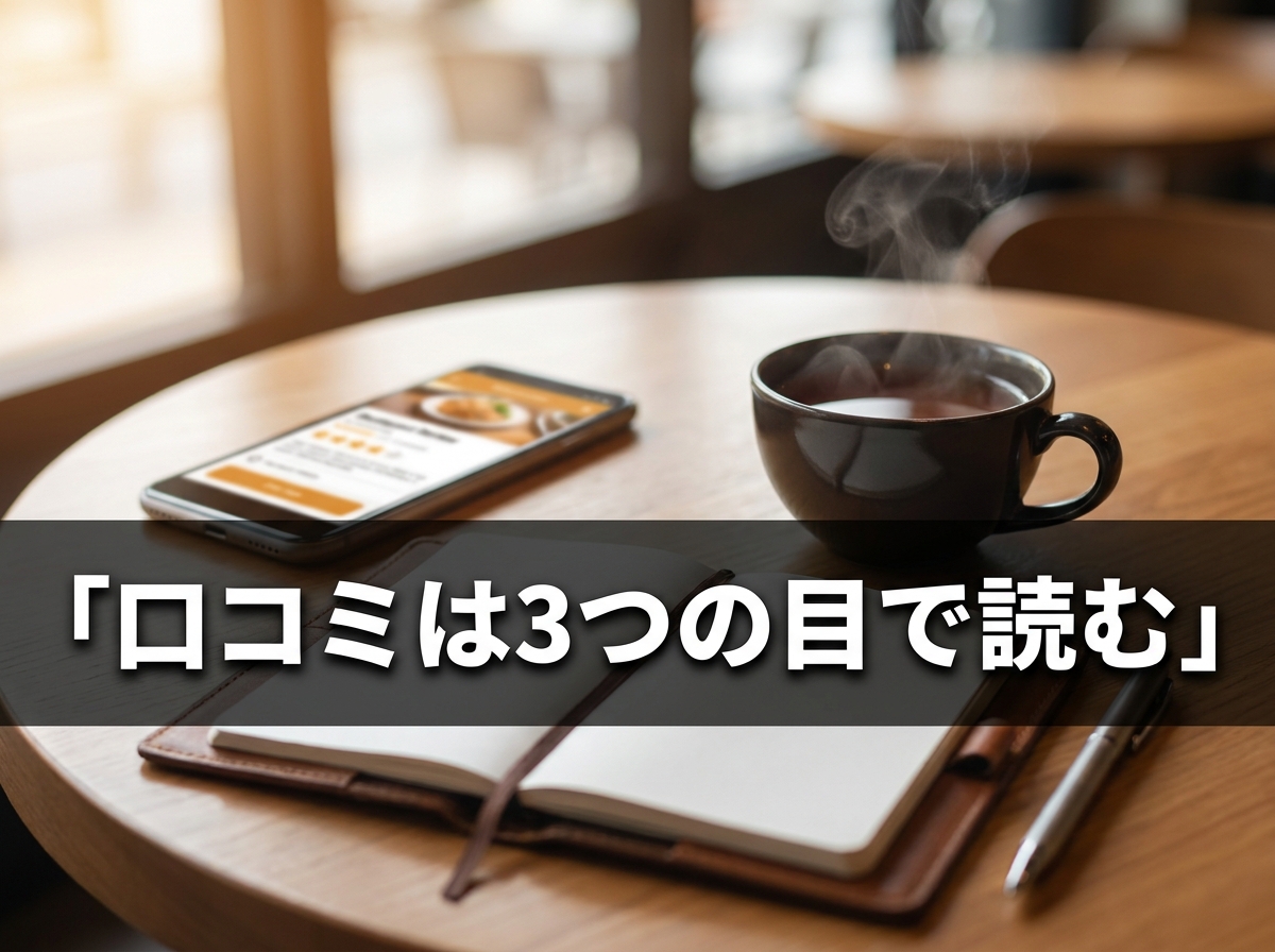 この3視点はどれか1つだけで判断すると歪みます。例えば客口コミだけ見ると「食べログ3.0台だからダメ」と誤解しがち(食べログは辛口で3.3以上あれば良評価です)。FC比較だけ見ると「利益率20%以上が合格」と数字だけで絞り込み、味の評判を見落とす。専門家記事だけ見ると業界全体の警告を自分の加盟判断にそのまま当てはめてしまう。