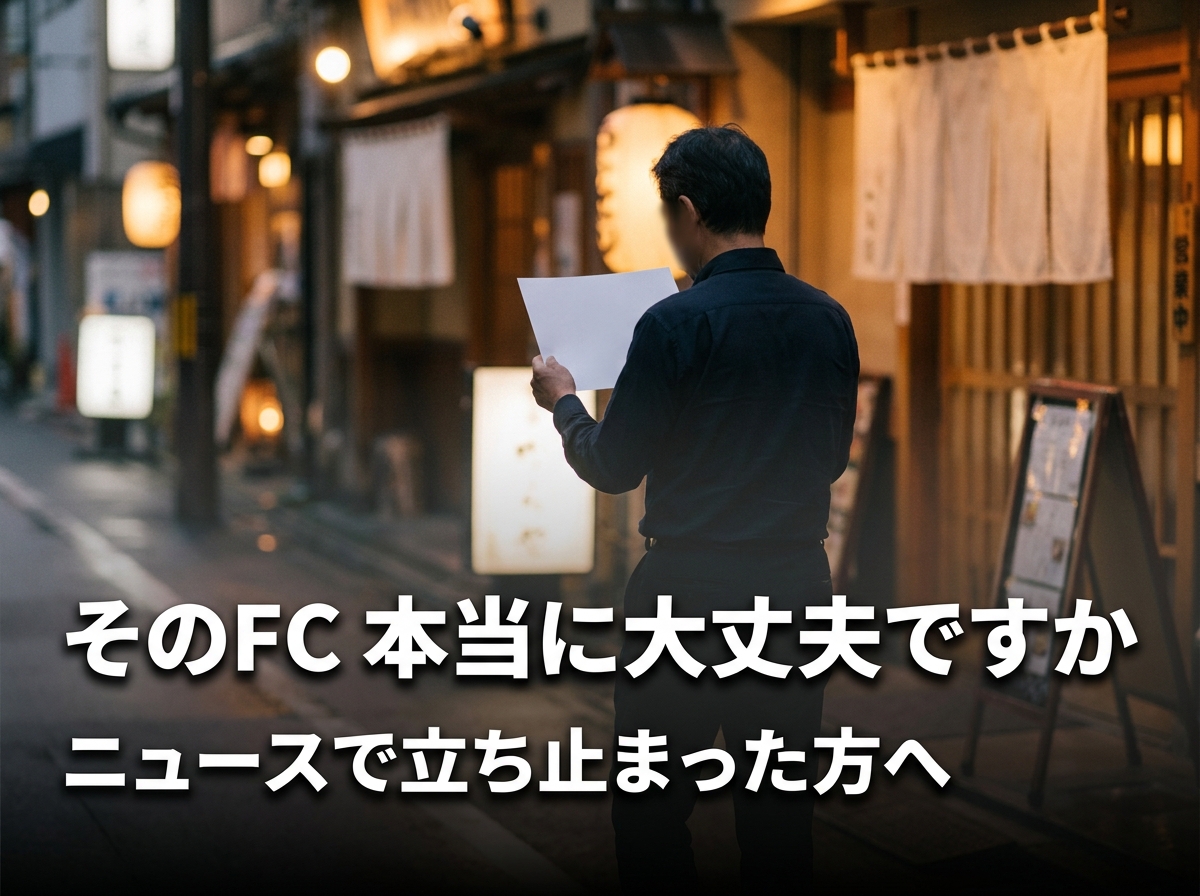 | 本部の集客支援の不足 | 「オープン後は自力で集客」と放置され、オーナーが個別にSNSやチラシを走らせる羽目になる | Web・SNS広告の本部運用体制や、既存店の集客実績が公開されているか |